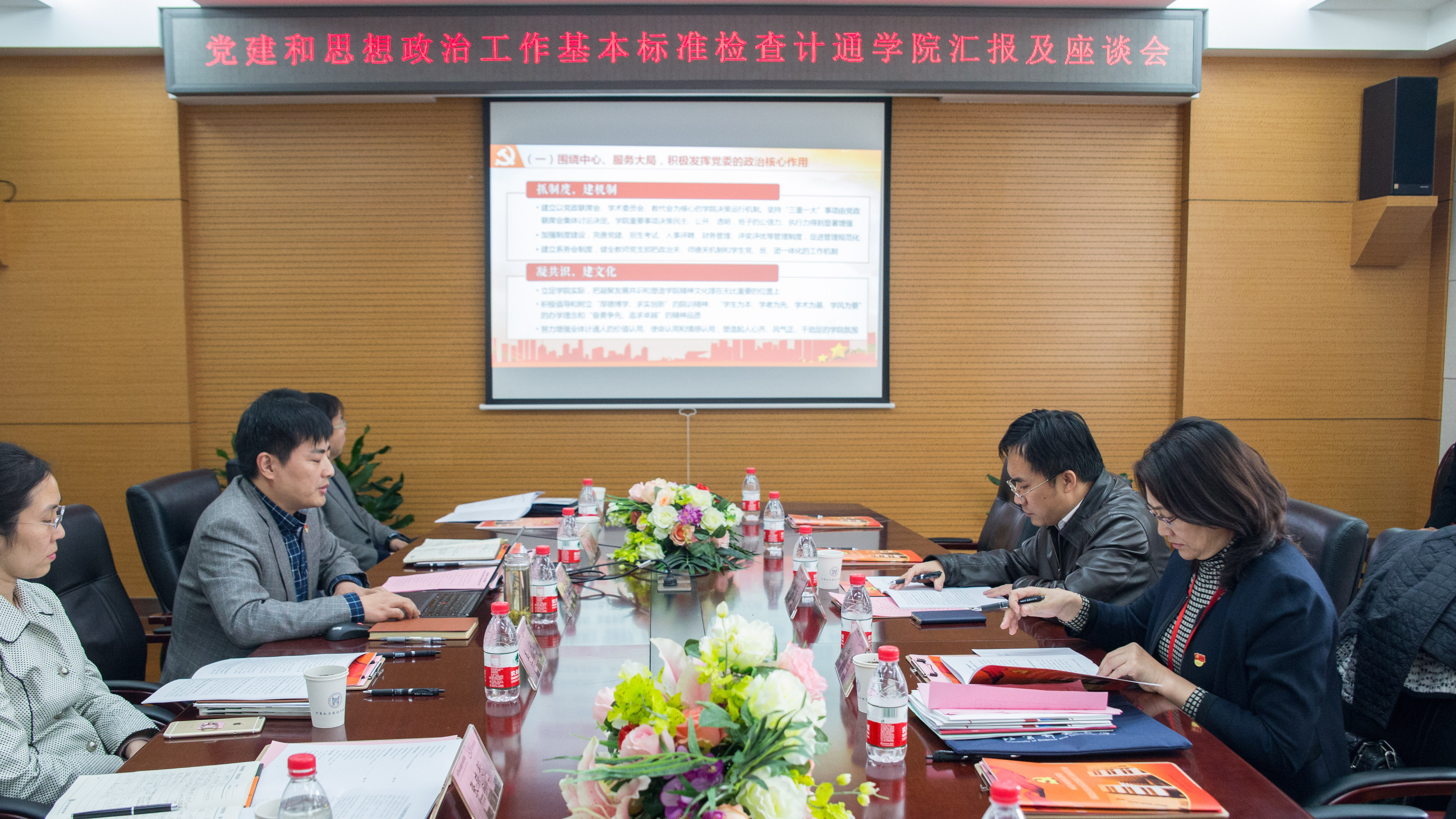 党政领导班子、党支部书记、青年教师及学生代表参加了汇报会。