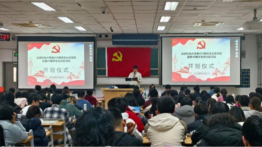2025年11月6日下午,北京科技大学第458期学生业余党校暨第40期学生党员轮训班开班仪式在逸夫楼304顺利举办。本期党校由通天论坛