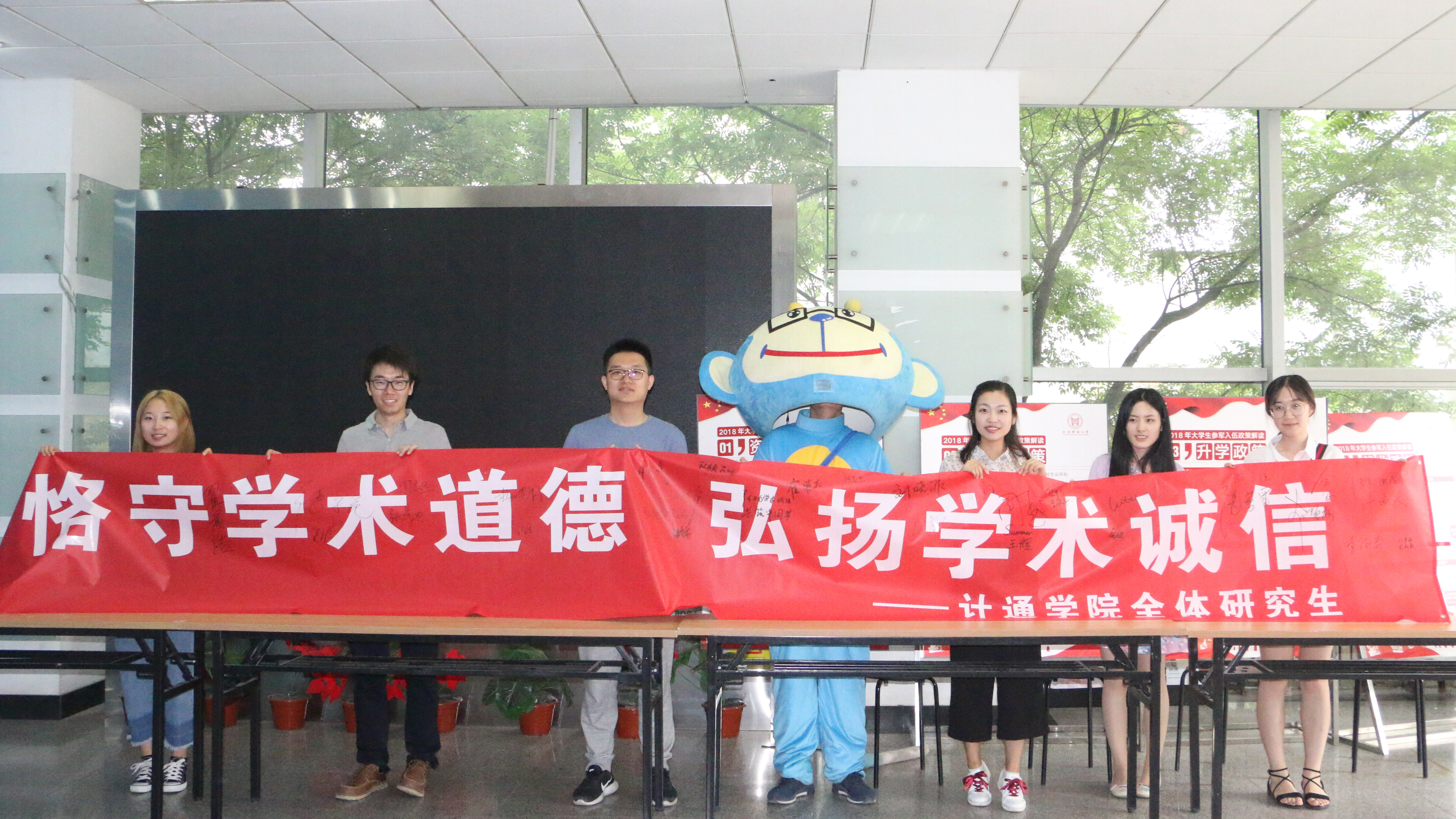于5月10日,在机电信息楼东侧一层大厅举办了“恪守学术道德,坚守学术诚信”活动,活动旨在弘扬学术诚信精神,营造良好的学术研究氛围,增强研究生学术道德意识,激励广大计通师生弘扬“五四”精神,爱国奋斗、勤学苦练。
