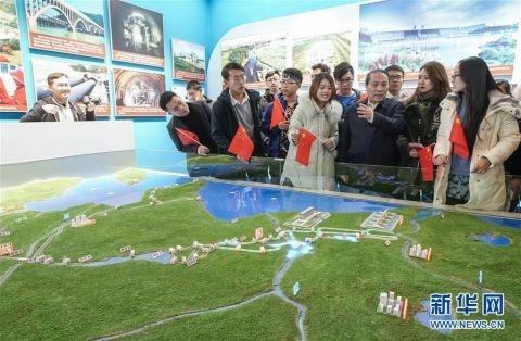 的入党积极分子在南水北调工程模型前参观