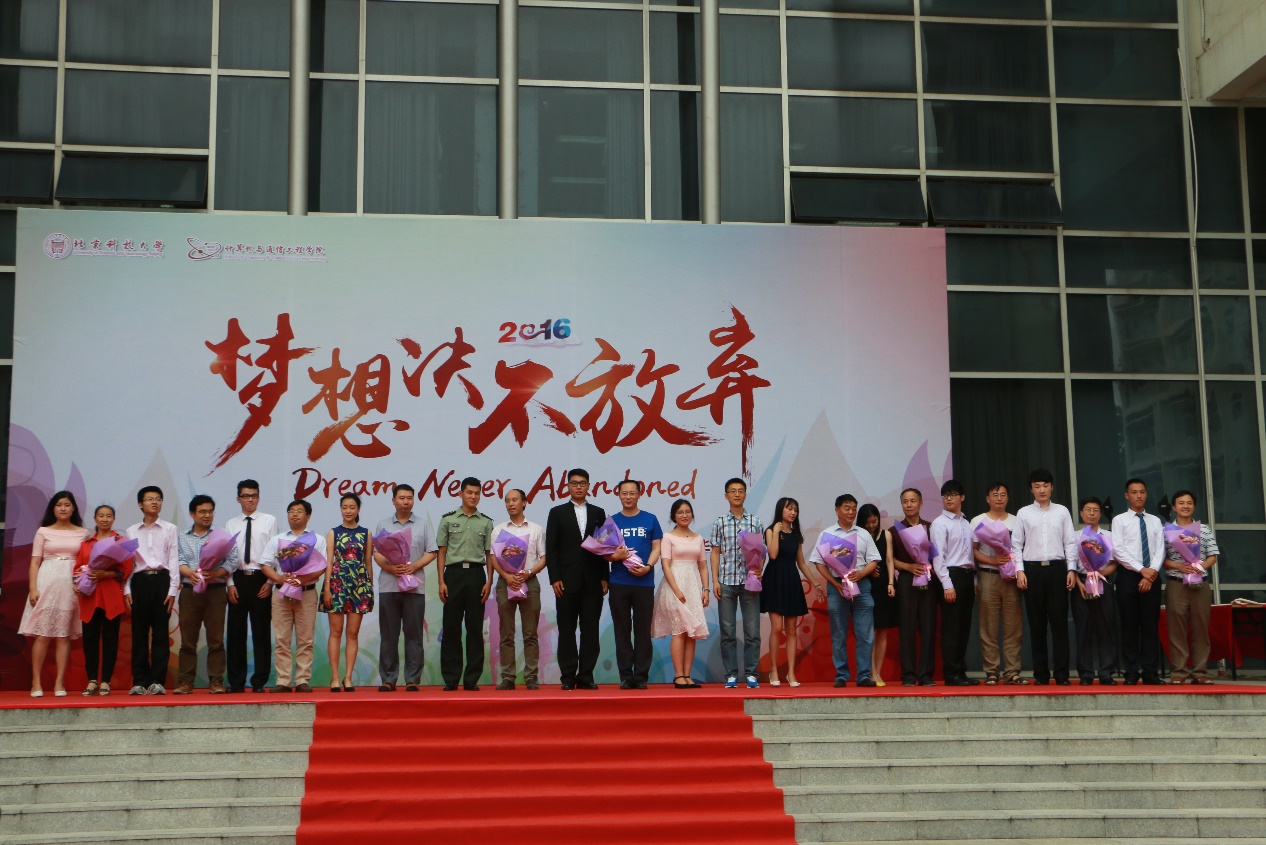 2016届本科生毕业典礼在机电信息楼南广场隆重举行。校学生工作部部长于成文、校招生就业处处长尹兆华、校团委书记李磊、校友会基金会办公室主任吕朝伟、通天论坛