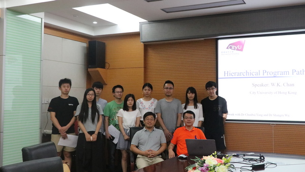 孙昌爱教授邀请,香港城市大学陈荣光博士来我校进行学术交流与合作。6月19日上午,陈荣光博士在机电信息楼601作题为“Hierarchical Program Paths(分层程序路径)”的学术报告。本次报告由孙昌爱教授主持,十余名师生参加。