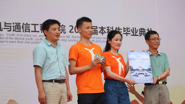 为毕业生精心设计了毕业纪念卡牌,毕业生也精心挑选了两株月季苗木。隆克平和黄武南向毕业生代表赠送了毕业礼物,并接受了毕业生赠予通天论坛