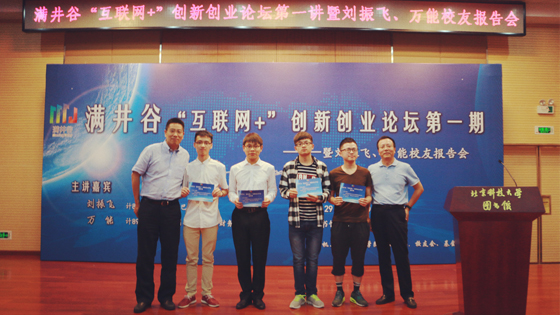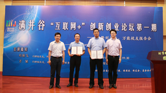 5月29日晚,满井谷“互联网+”创新创业论坛第一期暨刘振飞、万能校友报告会在北京科技大学图书馆报告厅精彩上演。计算机专业89级校友、阿里巴巴合伙人、副总裁刘振飞,计算机专业89级校友、神州泰岳董事、财务总监万能受邀回母校参加满井谷“互联网+”创新创业平台的成立仪式,受聘担任学生创新创业企业导师,并为首批进入“满井谷”的学生创新创业团队颁发入谷邀请函。报告会前,副校长王维才、何民庆与刘振飞、万能校友进行了交流。满井谷发起单位通天论坛