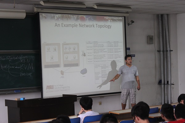 副教授(终身教席)黄迪江为计算机专业和信息安全专业讲授了“软件定义网络概述”课程。软件定义网络(SDN)在学术界、工业界和政府机关部门收到越来越广泛的关注。SDN能够让我们对网络事件相应更积极,从而更为有效的控制和改变网络构造,避免造成网络入侵所引发的损失。SDN可以帮助我们建立移动目标安全机制,提高云环境中的安全性。这种方式被视为对现有网络服务低侵扰的安全工作模式。本课程重点介绍了SDN的基本特征和云计算技术,并通过在移动云计算环境中的案例研究,解释如何部署基于SDN解决方案的安全的云计算系统。