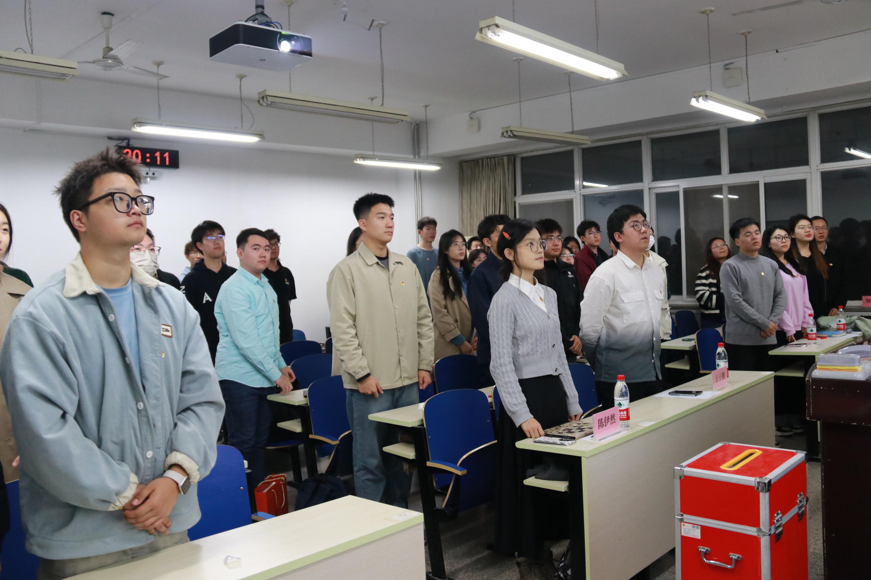 与会人员全体起立,奏唱《中华人民共和国国歌》