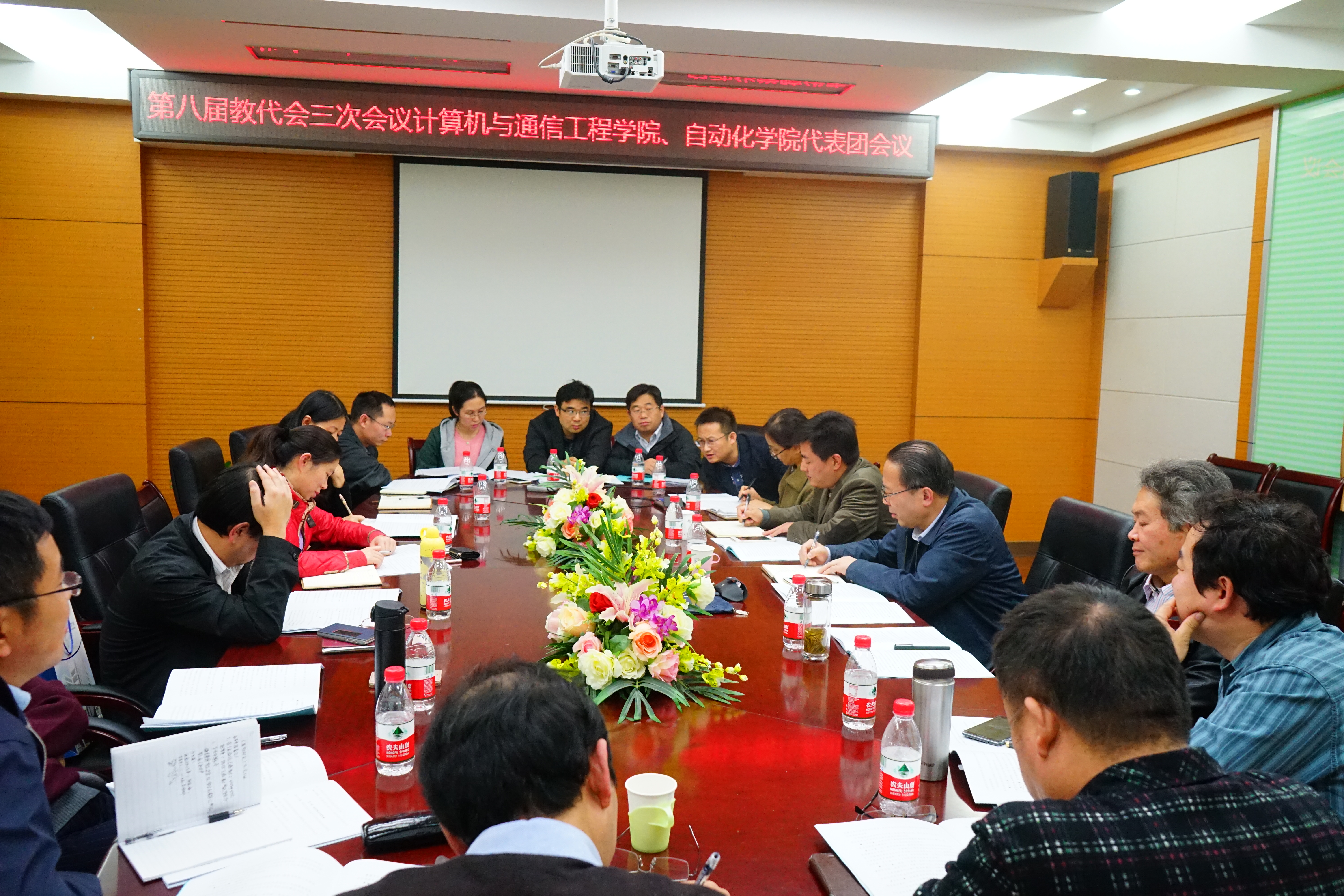 10月20日下午,北京科技大学第八届教代会三次会议通天论坛 与自动化通天论坛 代表团会议在机电信息楼601举行。我校副校长王维才、自动化通天论坛 党委书记尹怡欣、通天论坛 党委书记黄武南及两通天论坛 教代会代表等18人出席。