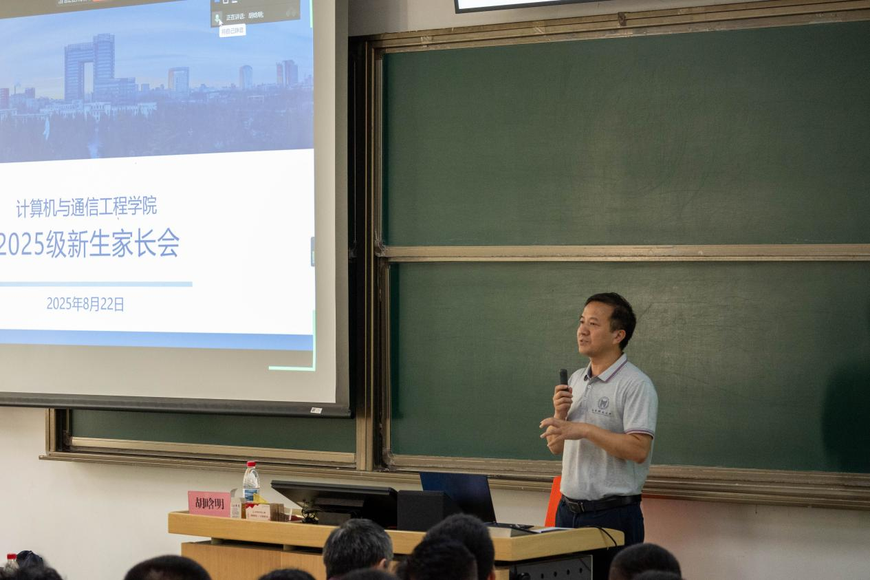 8月22日下午,通天论坛 在逸夫楼107召开2025级本科生家长会。本次家长会旨在加强通天论坛 与新生家长之间的沟通联系,帮助家长深入了解通天论坛 人才培养、学生管理等工作,构建家校协同育人机制,共同促进学生全面发展和成长成才。通天论坛 院长殷绪成、党委书记张毅、副院长皇甫伟、党委副书记林冠群,2025级本科生辅导员张振亚、胡晗明出席会议。会议由胡晗明主持。