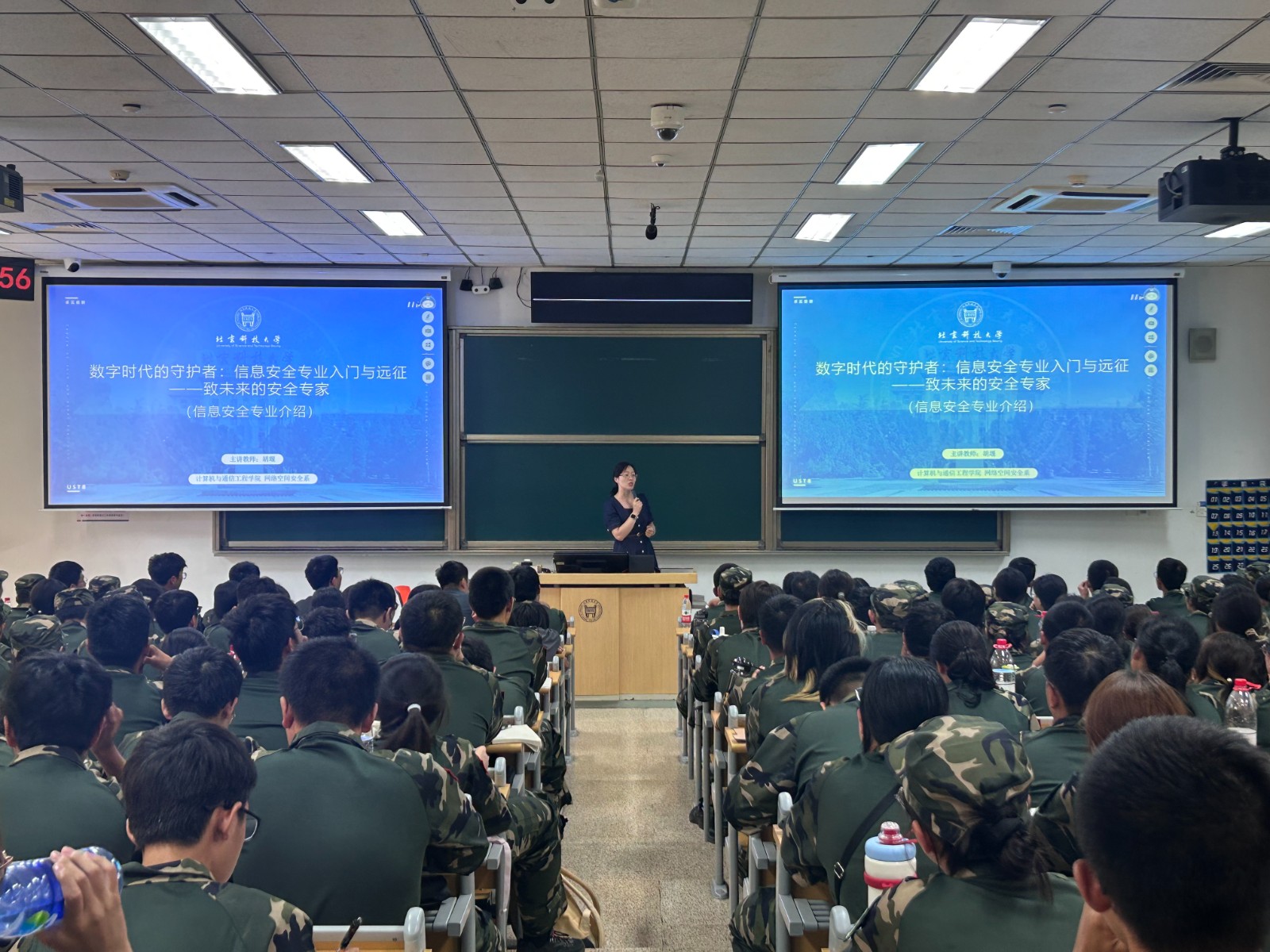 信息安全专题讲座中,胡堰老师通过“震网事件”“乌克兰电力系统攻击”等典型案例,直观阐释网络空间安全的重要性。该专业聚焦密码学、系统安全、工业互联网安全等核心方向,构建“纵向贯通、横向协同”的人才培养模式,旨在培养既具备网络攻防技术研究能力,又能服务国家战略需求的创新型安全人才,以“为数字时代筑牢安全防线”为使命,彰显专业责任担当。