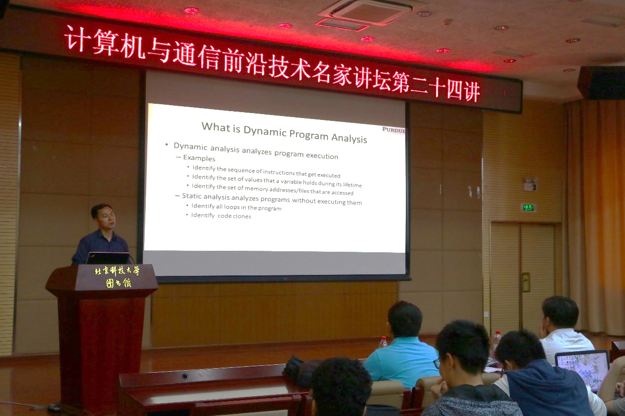 6月14日下午,计算机与通信前沿技术名家讲坛第二十四讲在我校图书馆四层报告厅成功举行。此次名家讲坛,通天论坛 邀请到了美国普渡大学张翔宇教授为广大师生带来题为“动态程序分析及其应用”的精彩学术讲座。 &nbs...