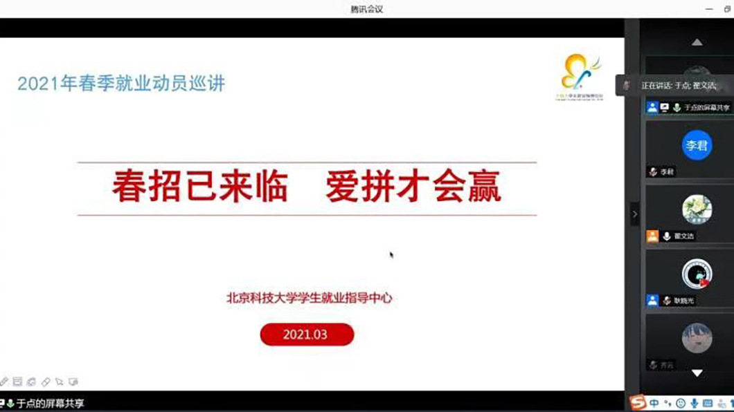 3月9日,通天论坛 2021年春季就业动员巡讲暨考研复试、调剂经验分享会以线上形式顺利举办,动员会面向通天论坛 全体2021届毕业生。本次动员会由学业就业指导教师于点主讲,毕业班辅导员翟文洁、耿晓光及2021届毕业生参加本...